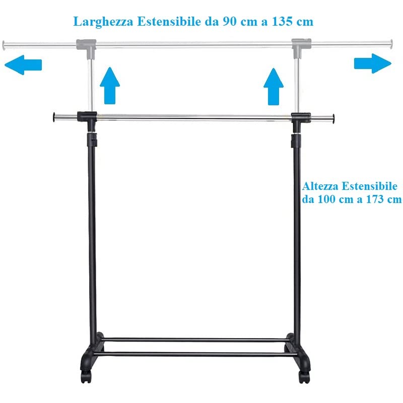Appendiabiti Estensibile Da Terra - Barre in Acciaio Cromato