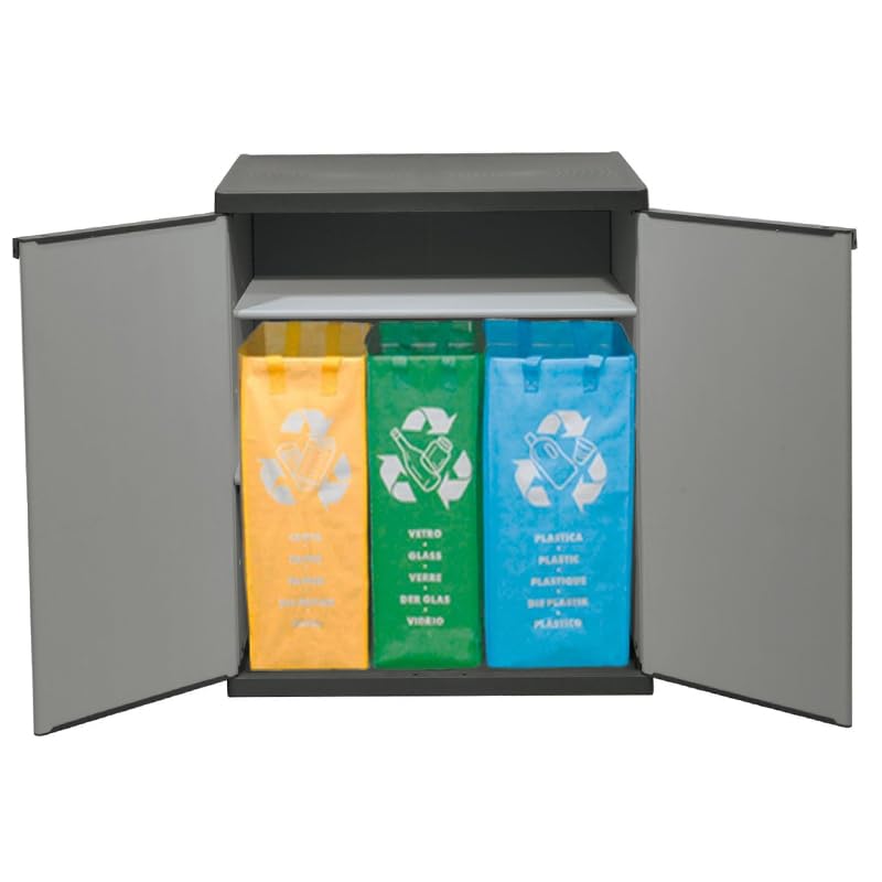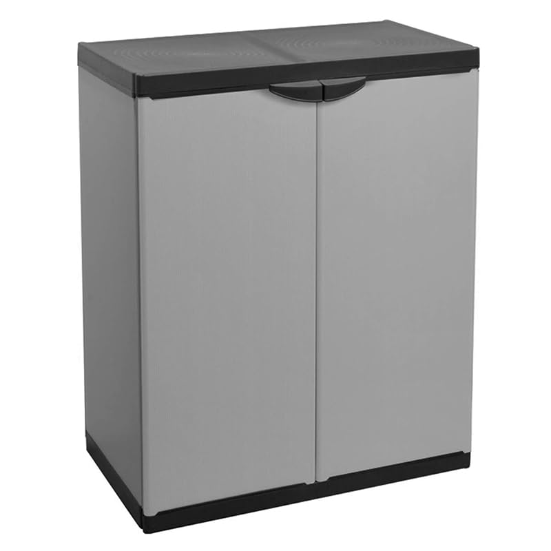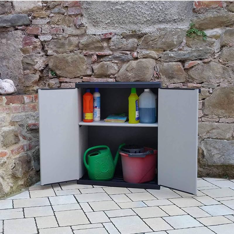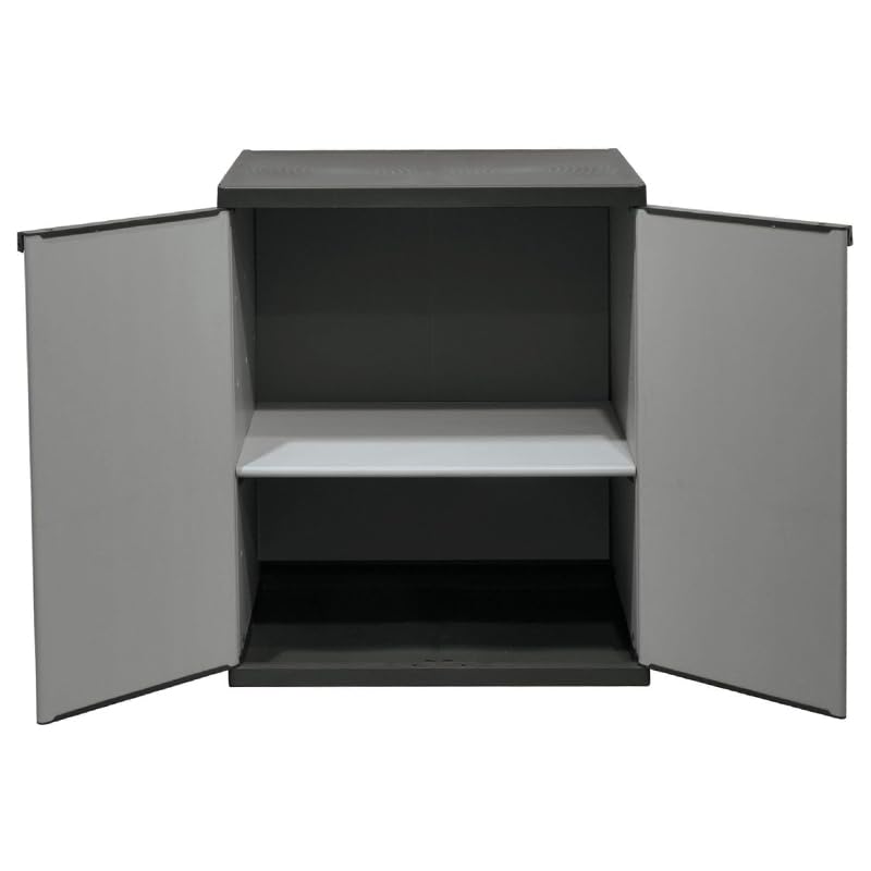 Armadio Basso a 2 Ante di colore Grigio, Misura 68x39,5x85 cm - Con 2 Ripiani e 2 Maniglie Lucchettabili, Montaggio Senza Viti