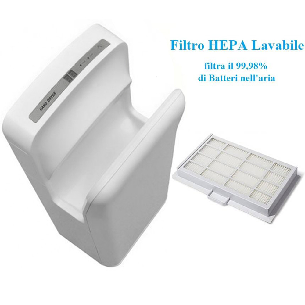 Asciugamani elettrico Verticale a parete - Potenza 1900 Watt con Filtro HEPA - Asciuga mani su entrambi i lati con Aria ad alta velocità - Super DRYER