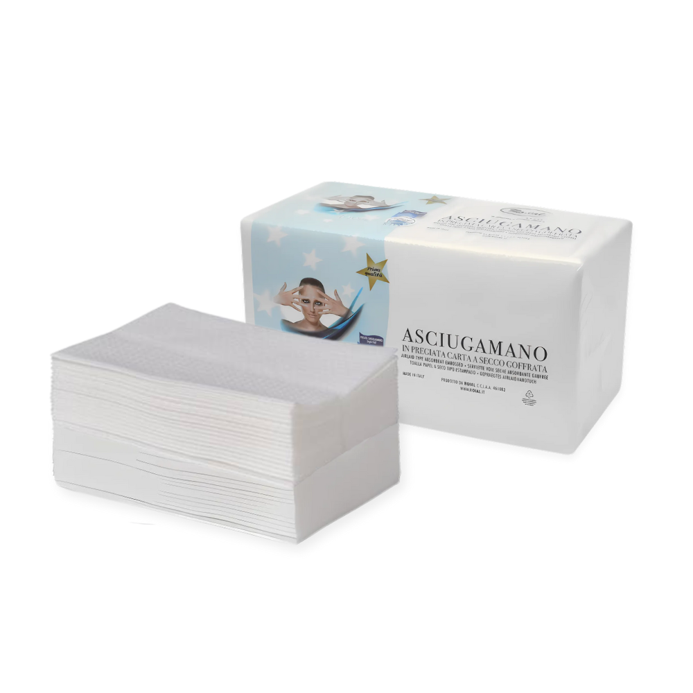Gli Asciugamani monouso in carta goffrata è un prodotto usa e getta ideato per un rapido assorbimento. Costituito da carta 100% Pura Cellulosa di altissima qualità prodotta in Italia, misura 35x67cm.