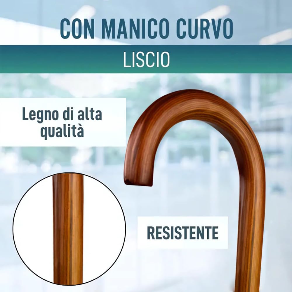 - COMFORT - Con un'altezza di 90 cm, questo bastone offre un sostegno stabile e confortevole durante le camminate; l'impugnatura ergonomica in legno garantisce una presa sicura e comoda per ogni utilizzo;