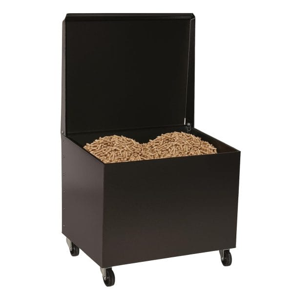 Baule portalegna e pellet da camino rettangolare in acciaio verniciato nero - misura 50×40×55 cm - Carrello con coperchio e ruote girevoli