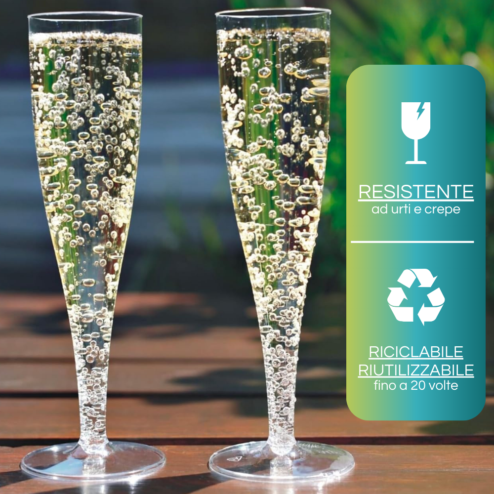 Calici Flute in Plastica da 140ml con gambo rimovibile