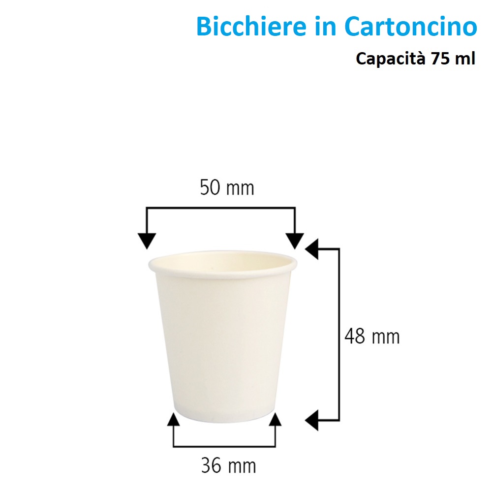 I bicchieri da 75ml in carta, di colore Bianco monouso, sono realizzati in cartoncino di pura cellulosa di altissima qualità accoppiato a caldo con un sottile film in PLA, adatti per bevande calde ma anche fredde.