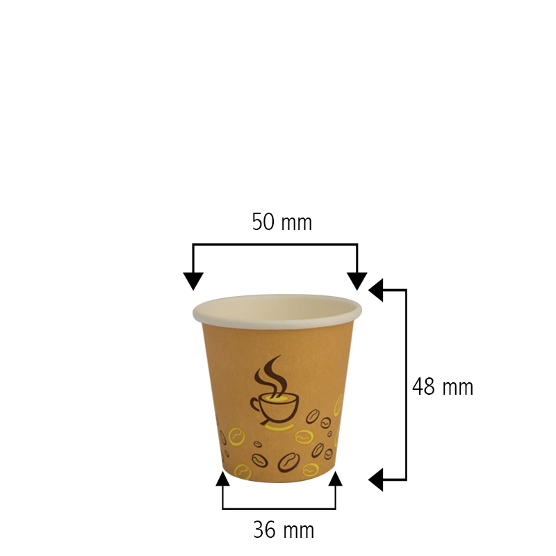 I bicchieri da 75ml in carta, di colore Avana con Grafica Chicco di Caffè monouso, sono realizzati in cartoncino di pura cellulosa di altissima qualità accoppiato a caldo con un sottile film in PLA, adatti per bevande calde ma anche fredde.