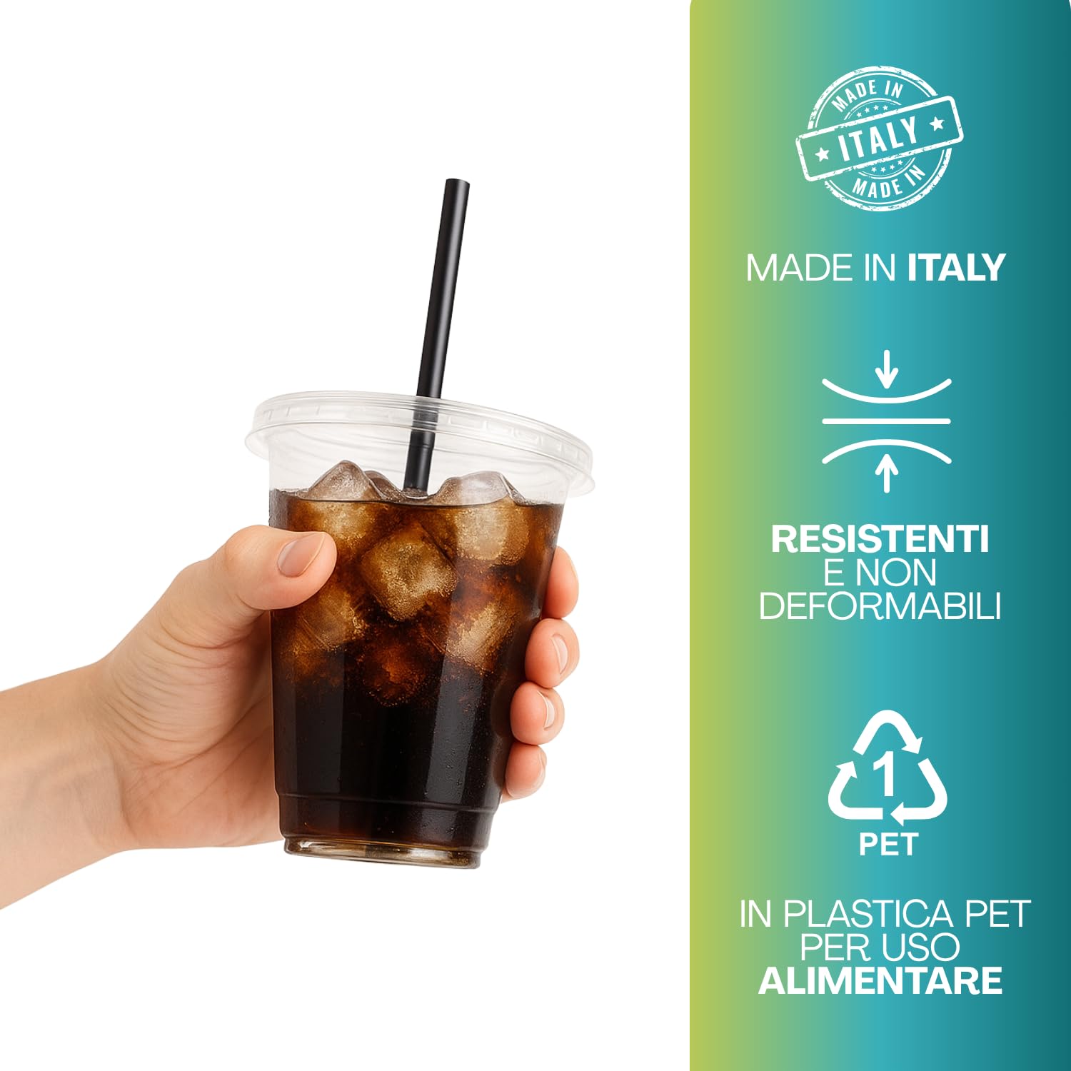 I Bicchieri Kristal in plastica monouso da 500 ml con coperchi vengono realizzati in Pet, molto resistenti e dal pratico utilizzo, sono ideali per uso professionale ma anche casalingo, per bevande calde o fredde. Dal design semplice ed elegante, rigido e liscio al tatto, sono comunemente utilizzati per il consumo di acqua o bevande rinfrescanti come aranciata, coca-cola, gassosa ma anche di birra, vino e superalcoolici.