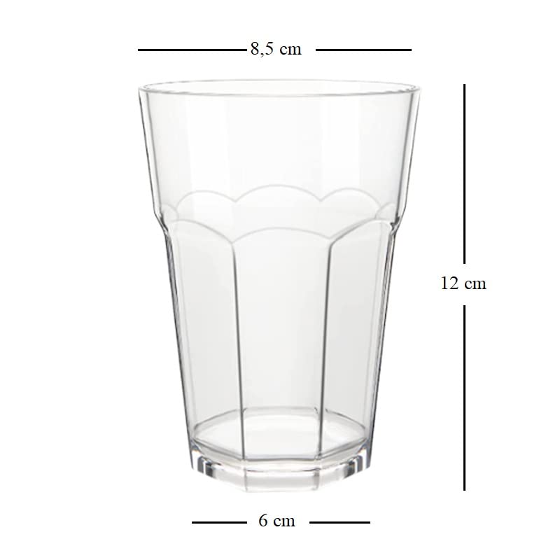 Bicchieri Tumblers trasparenti, con capacità pari a 400 cc, ideali per la consumazione di Moijto e altri tipi di cocktail, granite e succhi di frutta. Bicchieri da mojito perfetti per attività commerciali quali bar e ristoranti o semplicemente da utilizzare per un evento, festa, cena, ricevimenti eleganti, convention ecc.