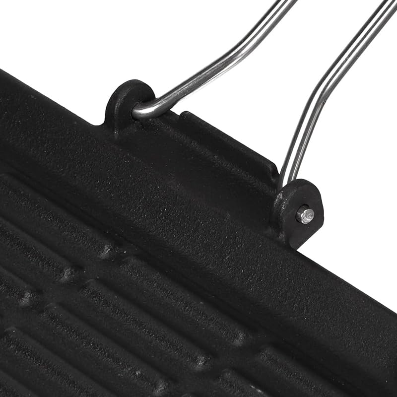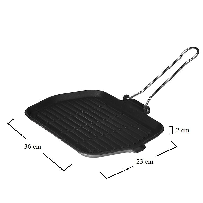 Bistecchiera rettangolare in ghisa smaltata - Misura 23x36cm - Piastra nera a induzione con manico pieghevole e grill antiaderente