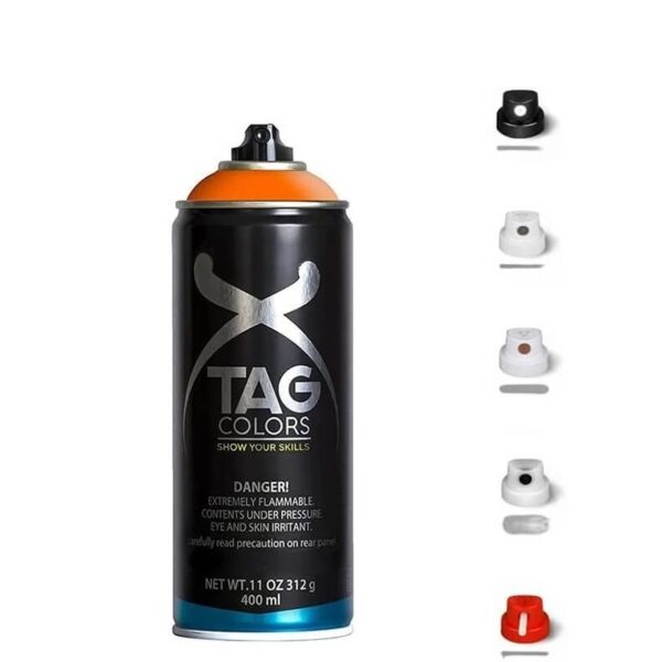 Bombolette spray di vernice per graffiti a media pressione, disponibili in varie tonalità di Arancione, con capacità pari a 400ml e con una finitura super opaca + confezione di 5 tappi per diversi tratti. Lo spray è un prodotto professionale, non gocciola e offre un'alta copertura ideale anche su muri problematici, evita il riflesso e offre maggiore precisione per i tuoi murales.