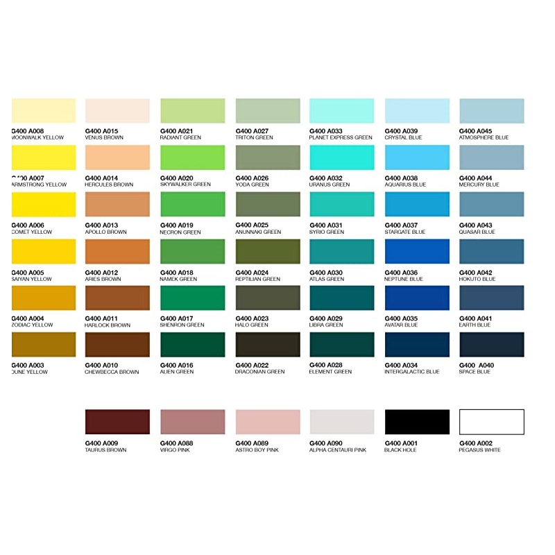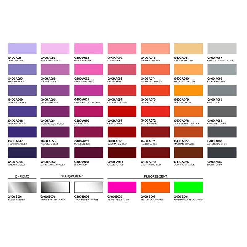 La bomboletta spray per graffiti è disponibile nelle seguenti colorazioni: