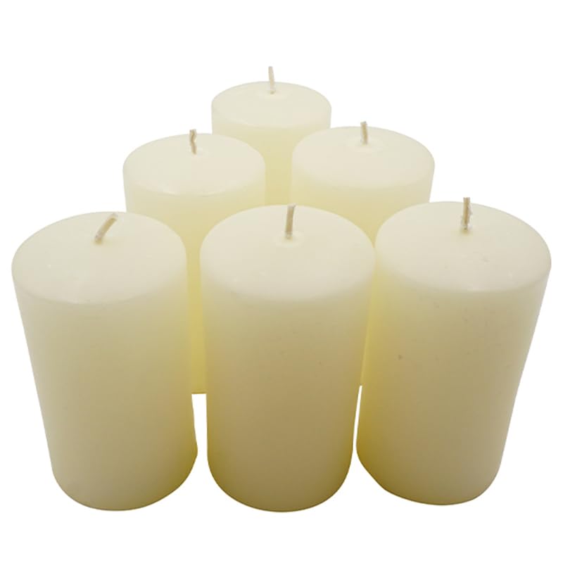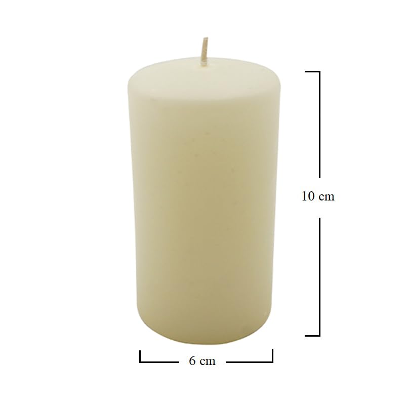 6 Candele moccolo antigoccia in cera paraffina di colore avorio - Altezza 10cm e diametro 6cm, durata 48 ore - Decorazioni per feste ed eventi