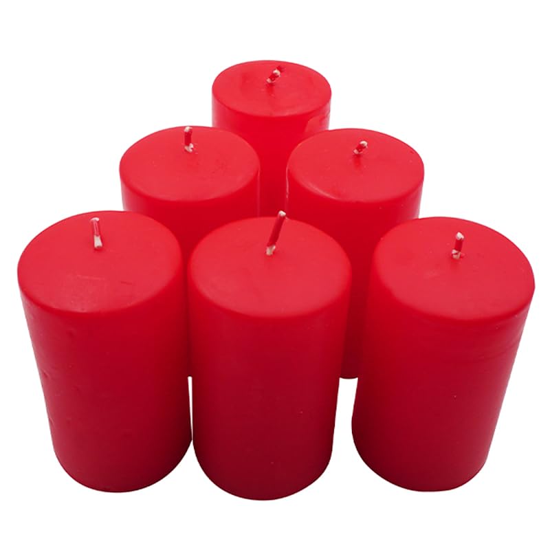6 Candele moccolo antigoccia in cera di colore rosso con stoppini in cotone - Altezza 10cm e diametro 6cm, durata di 48 ore - Decorazioni per Feste ed Eventi