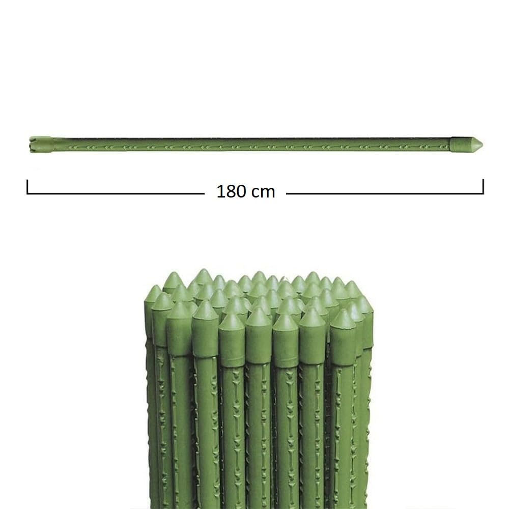 Canne in Acciaio con Rivestimento in Plastica color Verde, lunghezza pari a 180 cm, ideali per il sostegno di piante rampicanti o per reggere le piantine di pomodori così da garantire la corretta crescita proteggendole dal vento.
