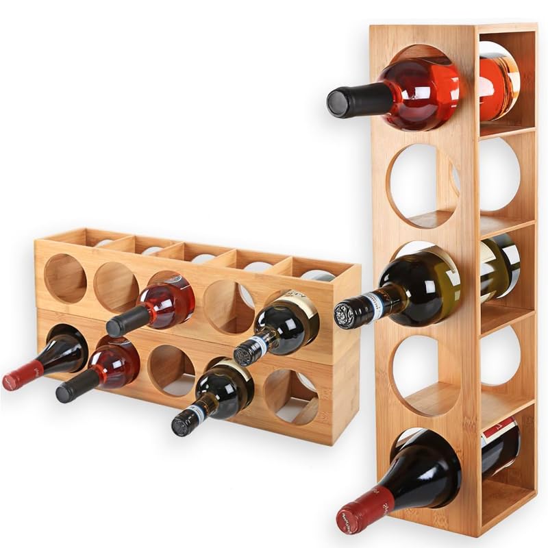 Cantinetta Vini in Bambù a 5 Scomparti ( 14x14x53 cm ) - Scaffale Portabottiglie Componibile, Predisposizione montaggio a Parete - Bottiglie Vino, Champagne, Liquori