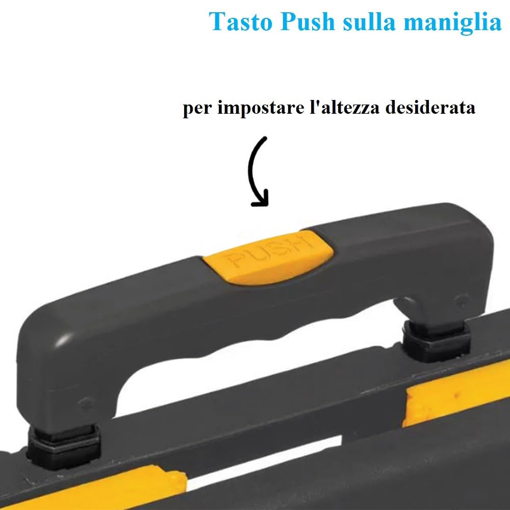 Carrello portaspesa pieghevole con Cassa in Plastica Gialla e Nera - Misura 47x38x98 cm e portata massima 35 Kg