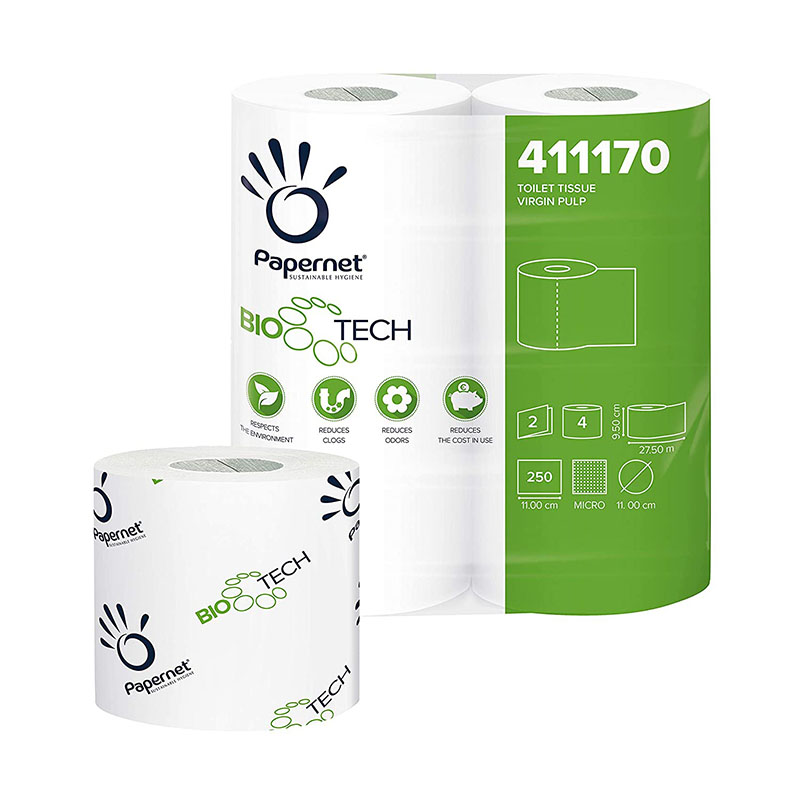 48 Rotoli di Carta Igienica Papernet Biotech a 2 Veli bianca - 4 Confezioni x 12 Rotoli