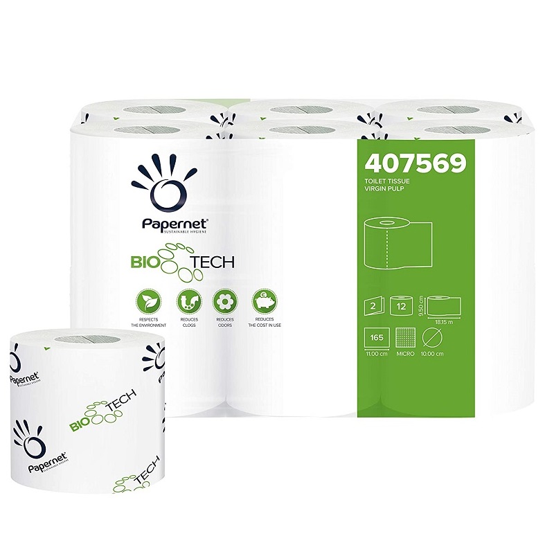 96 Rotoli di Carta Igienica Papernet Biotech a 2 Veli bianca - 8 Confezioni x 12 Rotoli