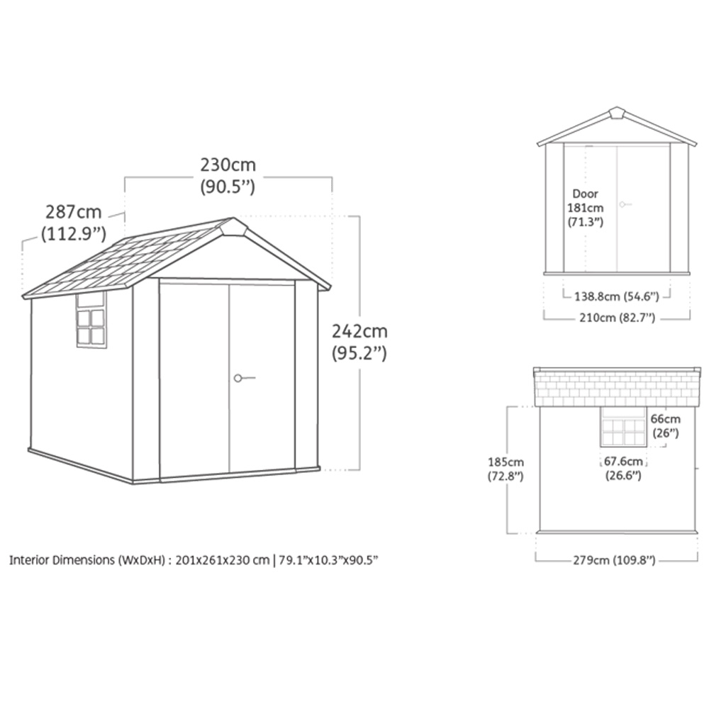 Keter Casetta da Giardino Oakland - Misura 229x287x242H cm (6 m²), in Duotech effetto legno spazzolato di colore Grigio