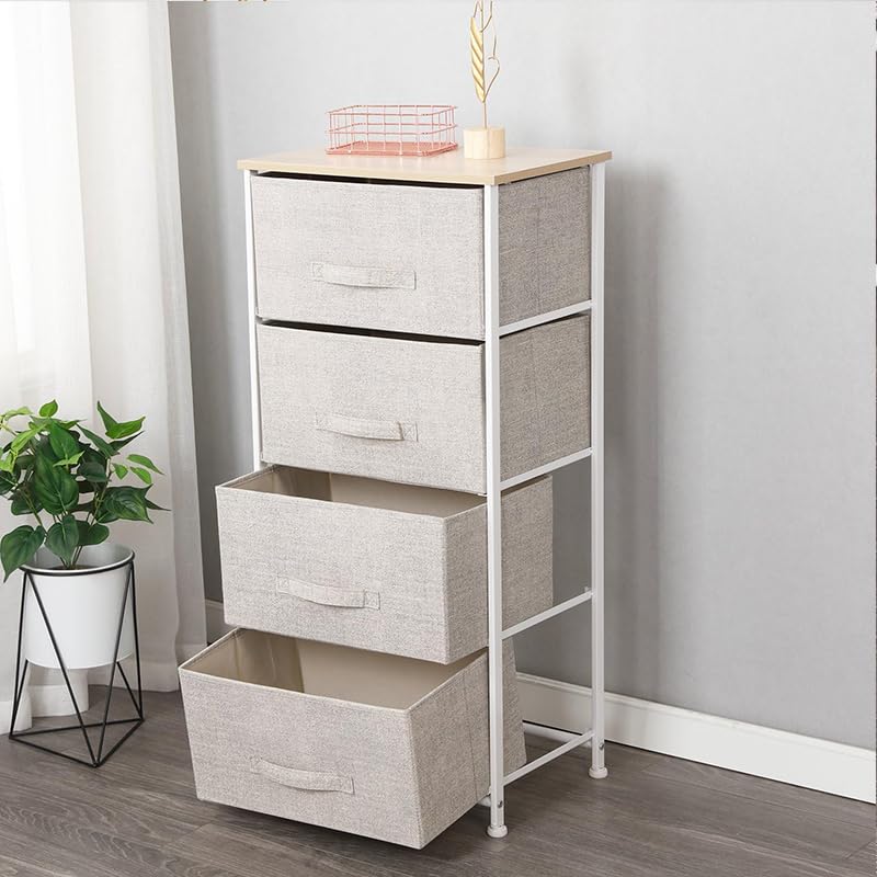 Cassettiera a 4 cassetti in tessuto Mis. 45x30x95 cm - Con struttura in metallo e base superiore in Legno - Comò Mobile Organizer Portaoggetti