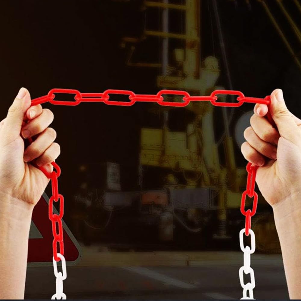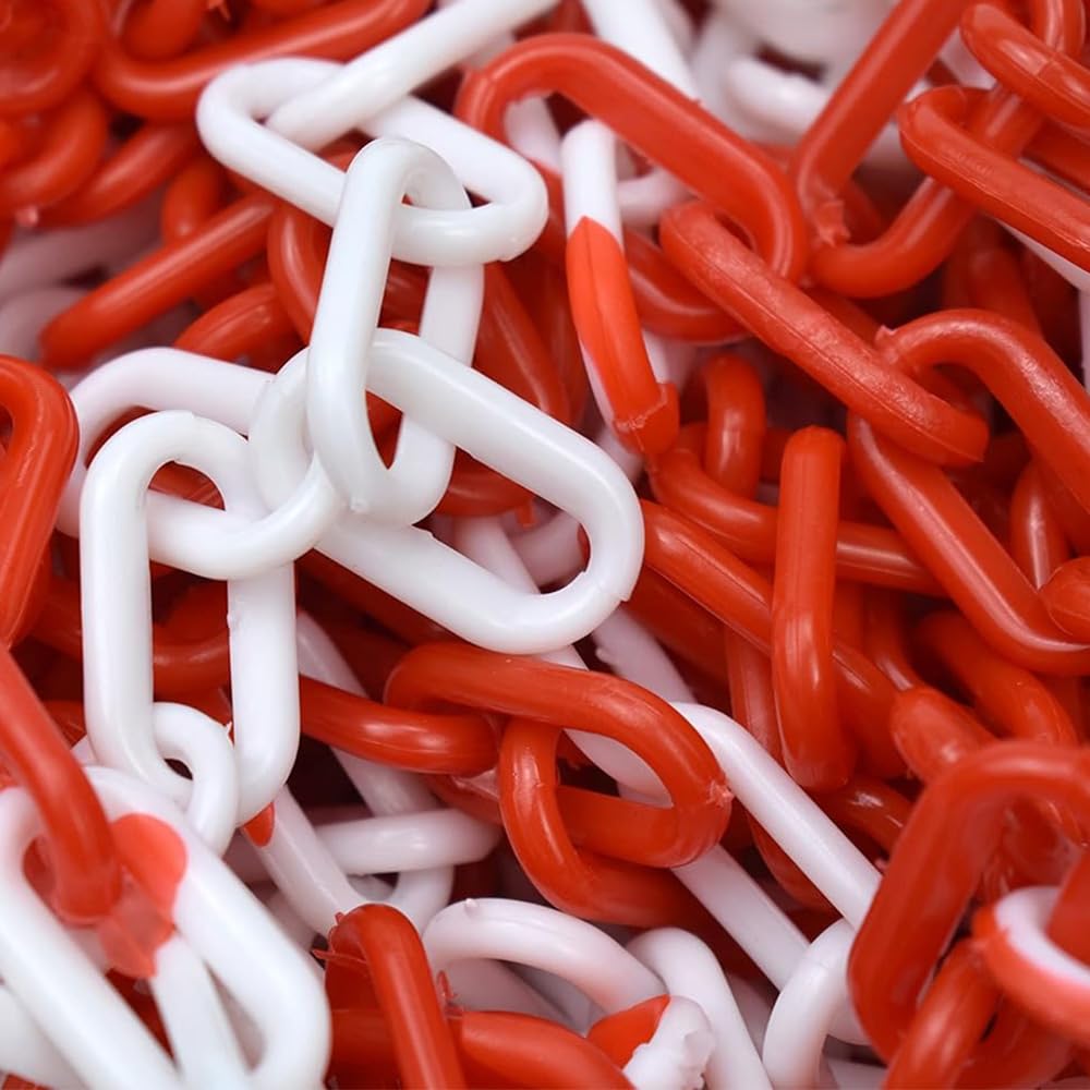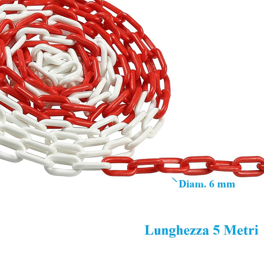 5 Metri di Catena rossa e bianca in plastica - Catena di delimitazione con maglia genovese diametro 6 mm