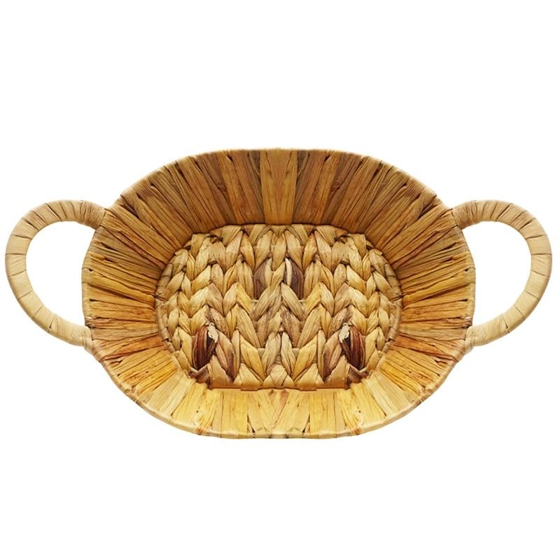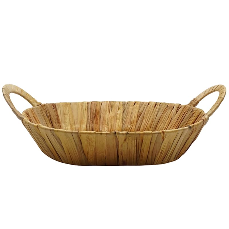 Cestino ovale di corda di giacinto d'acqua - Mis. 30x23x7cm - Struttura in ferro, cesto portaoggetti decorativo con 2 maniglie, contenitore intrecciato, organizer per camera, bagno, cucina