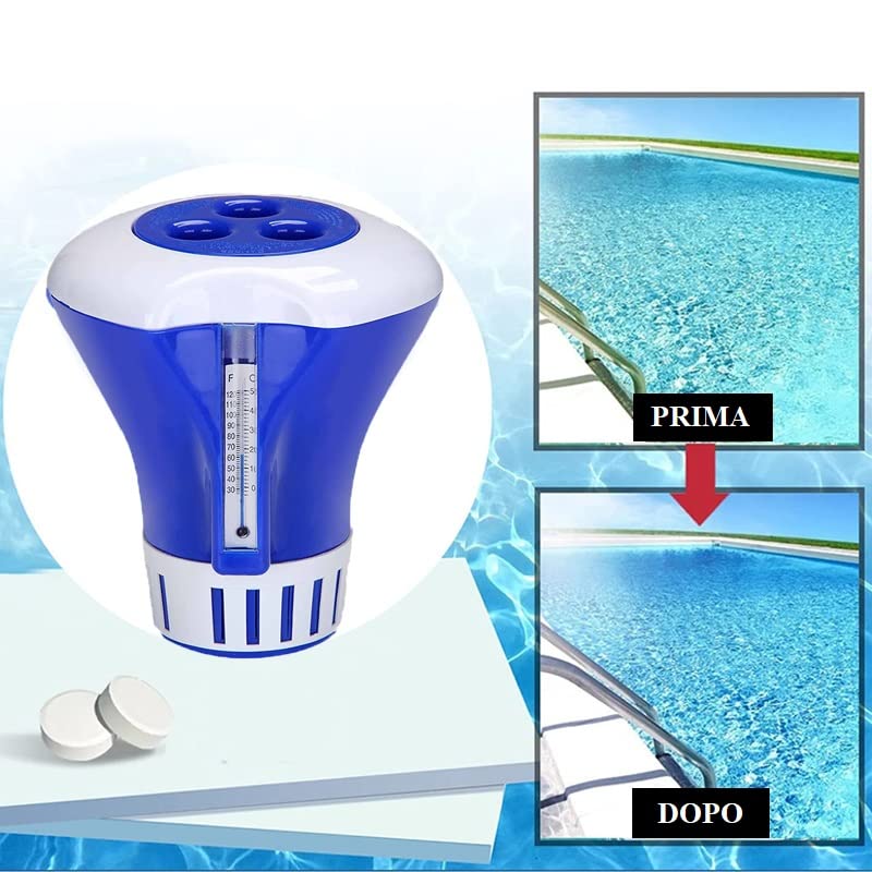 5 pastiglie multifunzione + 1 Dosatore Galleggiante, ideale per acque di piscina ad azione clorante, alghicida, stabilizzante del pH, flocculante e schiarente. Il prodotto, usato costantemente, permette il corretto mantenimento dell’acqua e aiuta a mantenere costante il valore del cloro nella tua piscina.