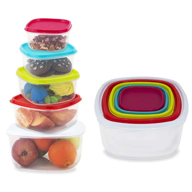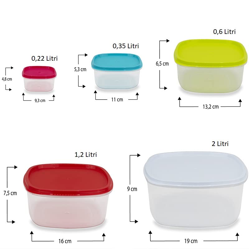 Contenitori in plastica per alimenti – Set 5 Contenitori quadrati impilabili con Coperchi Milleusi