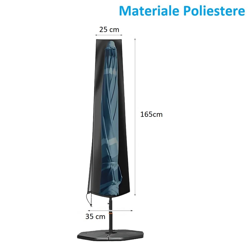 Copertura Protettiva per Ombrellone da Giardino - 25/35x165 cm - Telo Impermeabile in Poliestere con Laccetto - Resistente a Pioggia, Neve, Polvere e Raggi UV