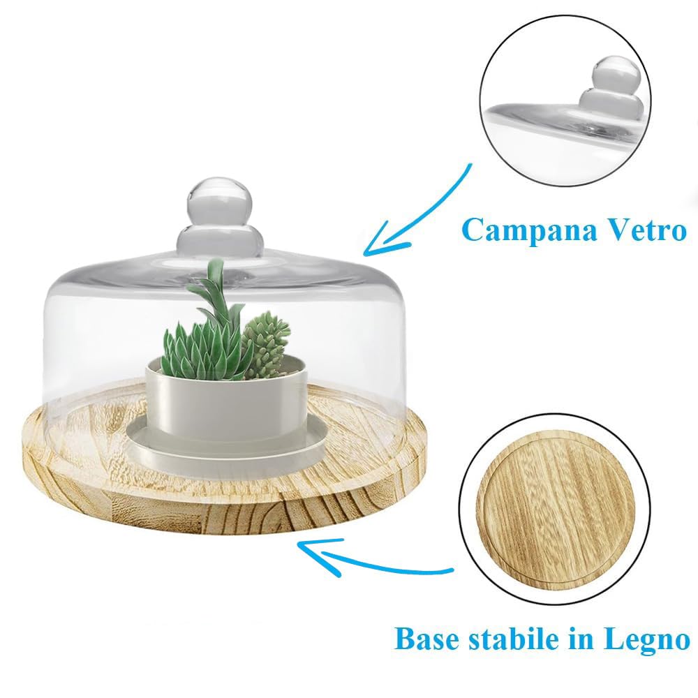 Campana in Vetro Trasparente con Base in Legno - Misura 27x22 cm - Espositore Decorativo per Dolci, Oggetti e Composizioni Floreali