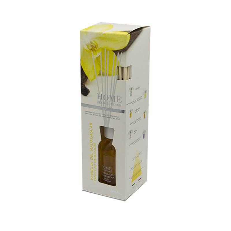 Diffusore per ambiente profumazione: Vaniglia del Madagascar con 6 bastoncini in legno. Disponibile in singola confezione da 125ml.