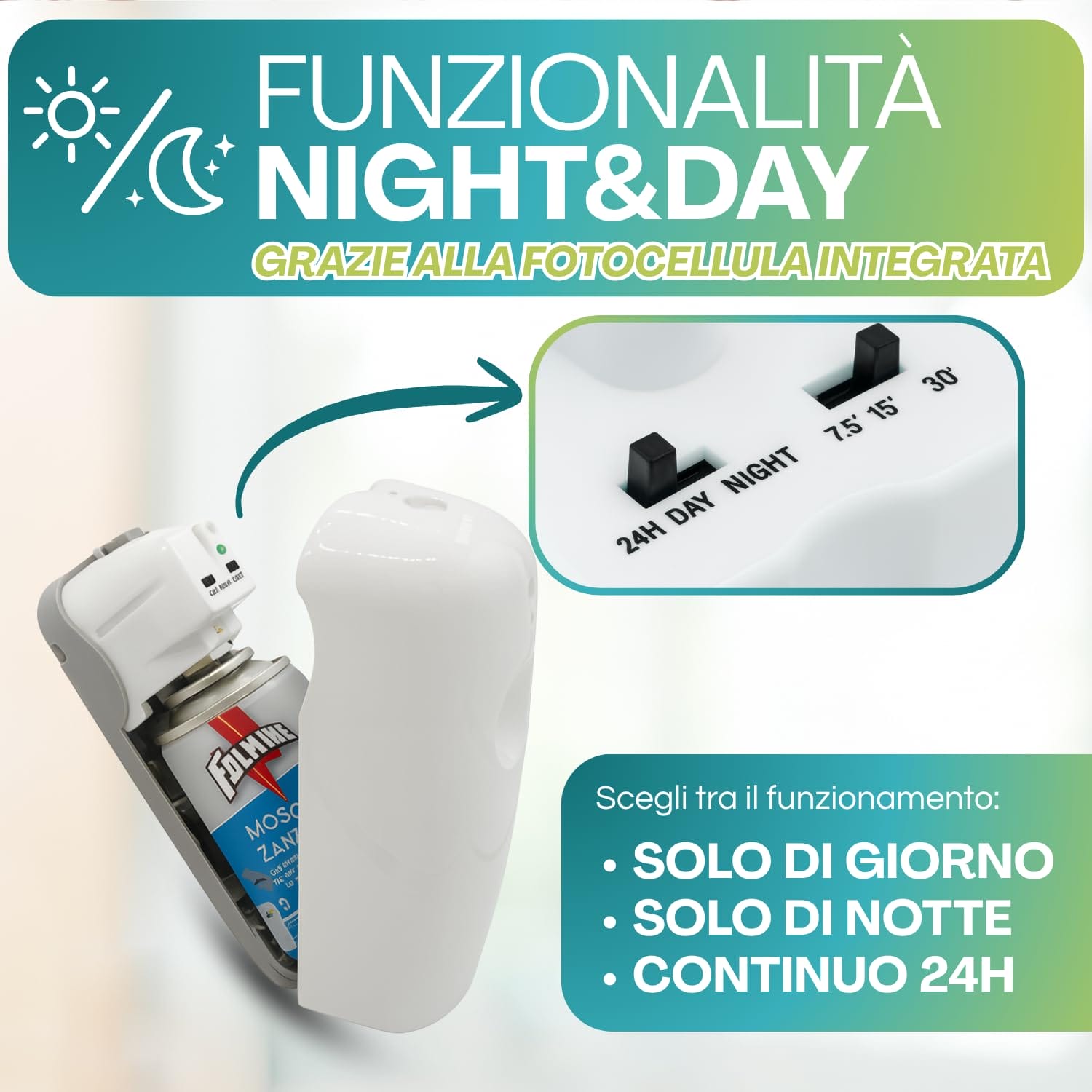 Erogatore automatico compatibile con bombolette da 250 ml - Diffusore con funzione night and day programmabile