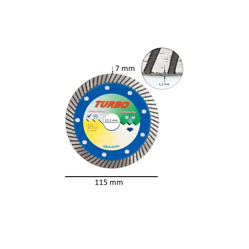 Disco diamantato a corona continua super sottile mis.115x2,2 mm - Per taglio di Gres, Granito, Ceramica e Marmo