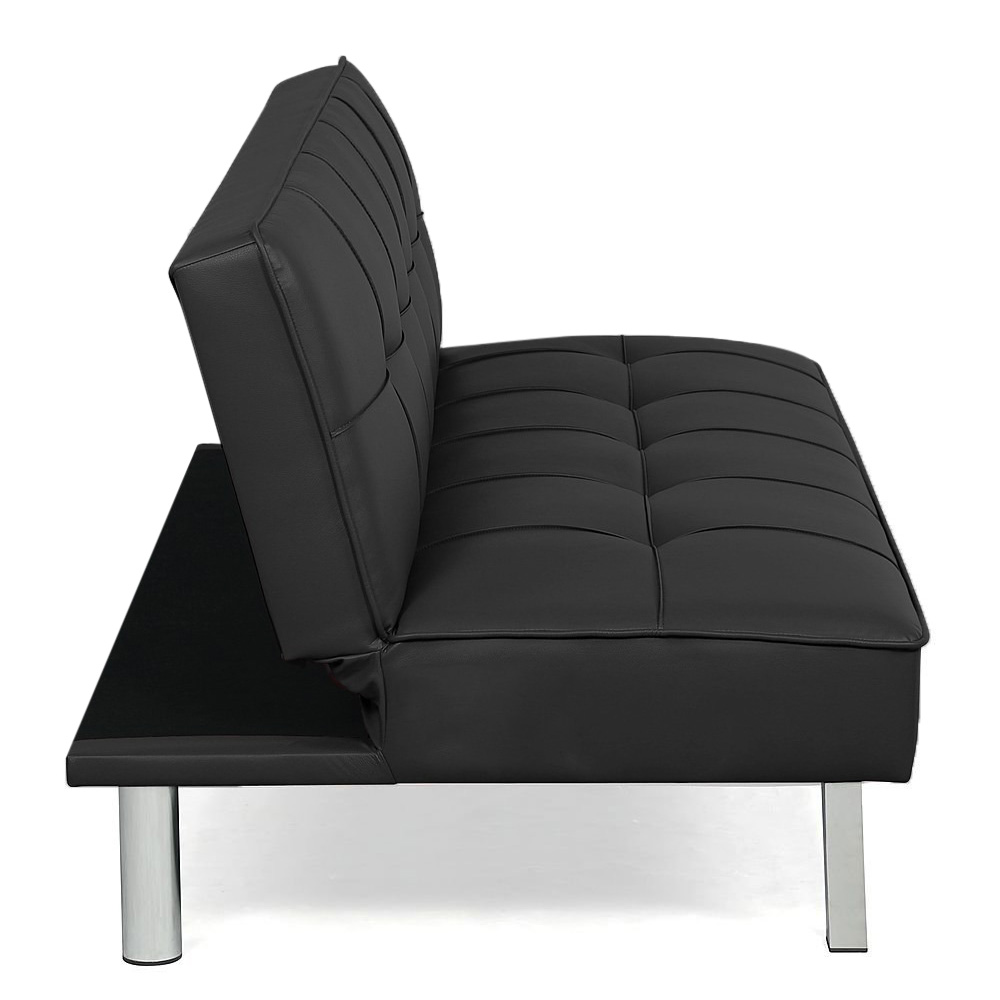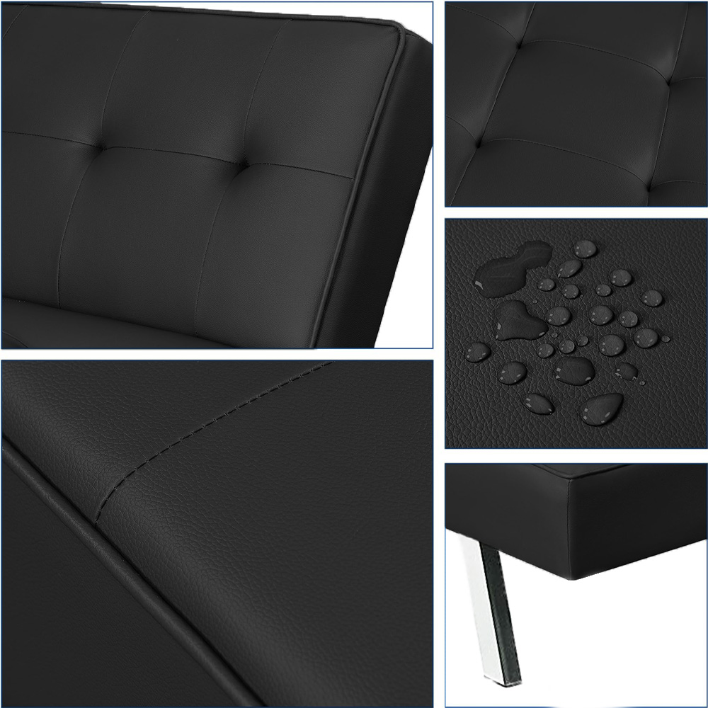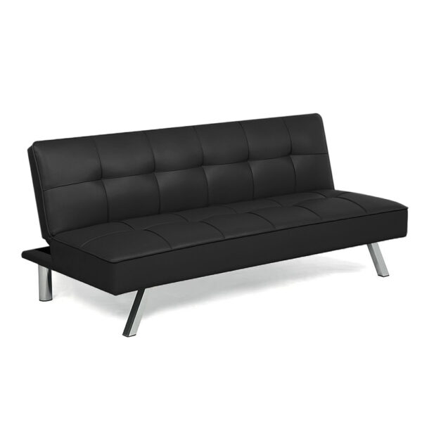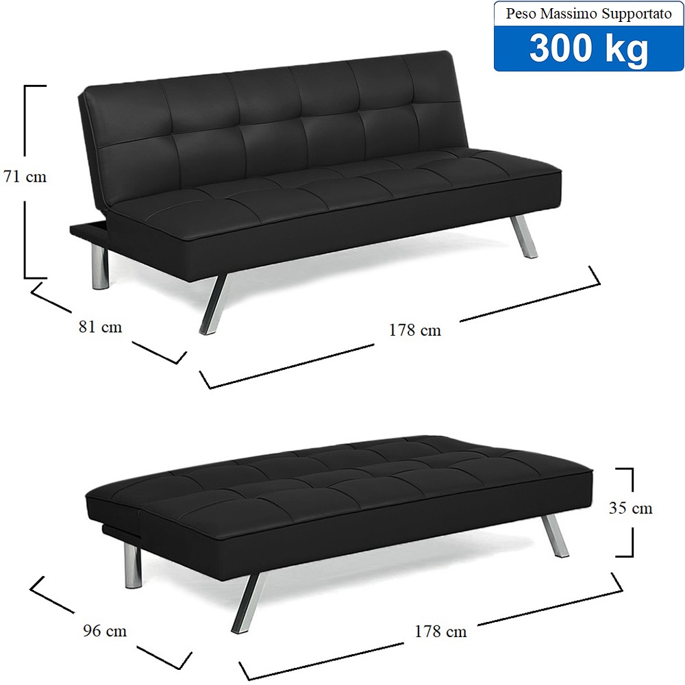 Divano letto da 3 Posti con schienale ribaltabile e gambe in metallo - Misura 178x81x71 cm - Divano da salone con design moderno in similpelle - Colore Nero