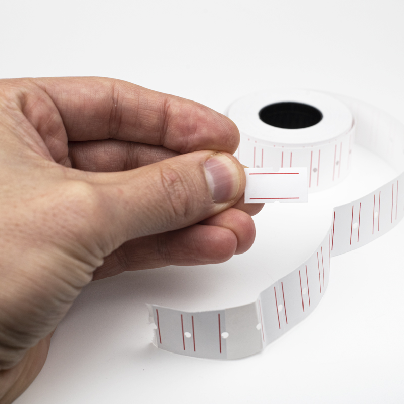I Rotoli di etichette prezzatrici adesive bianche per prezzatrici ed etichettatrici sono realizzate con carta autoadesiva, ed ogni singola etichetta misura 21x12 mm.