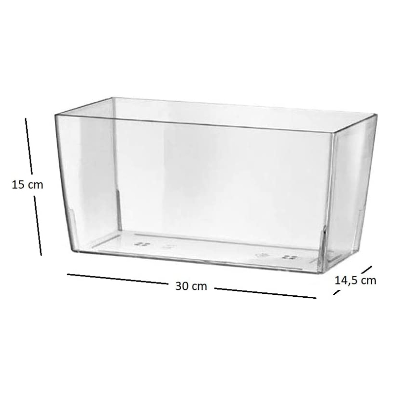 Vaso rettangolare in plastica trasparente 30×14,5×15 cm