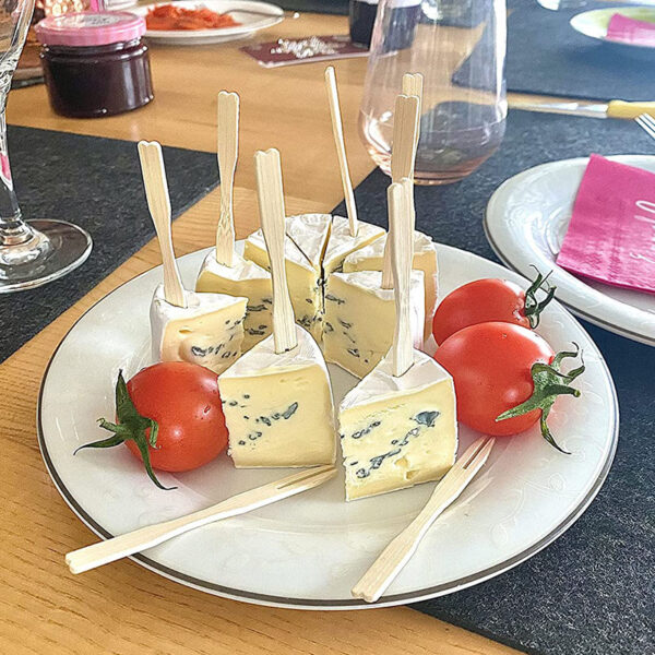 Forchettine di legno a 2 Punte con lunghezza pari a 9 cm. Forchette a due rebbi biodegradabili e compostabili imbustate in confezioni da 100 pezzi, dal design semplice e originale ideali per un uso sia professionale che casalingo per sostituire le classiche forchettine.