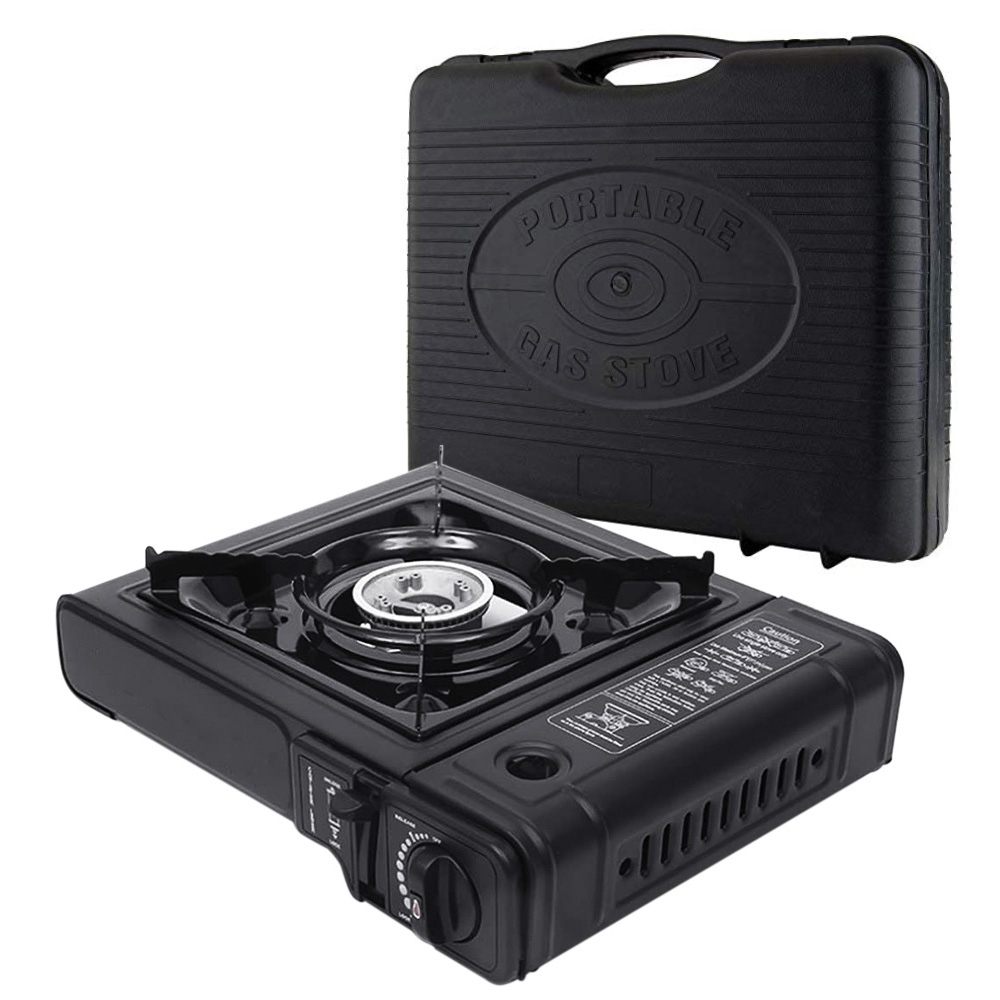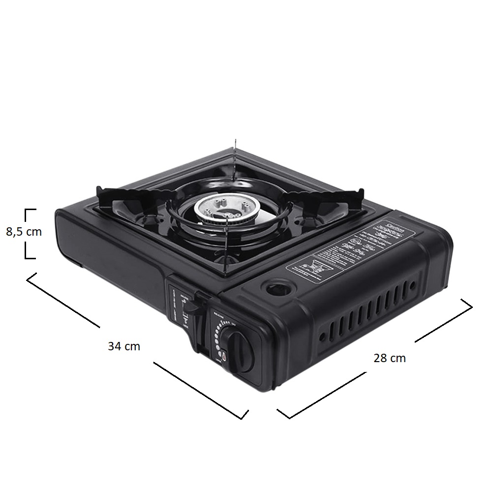 Un fornello a gas da campeggio di colore Nero, misura pari a 34x28x8,5 cm, perfetto per le tue avventure all'aria aperta! Ideale per preparare rapidamente pasti deliziosi durante campeggi, picnic o eventi all'aperto. Il fornello viene fornito con apposita valigetta trasportarlo con facilità ovunque tu vada.