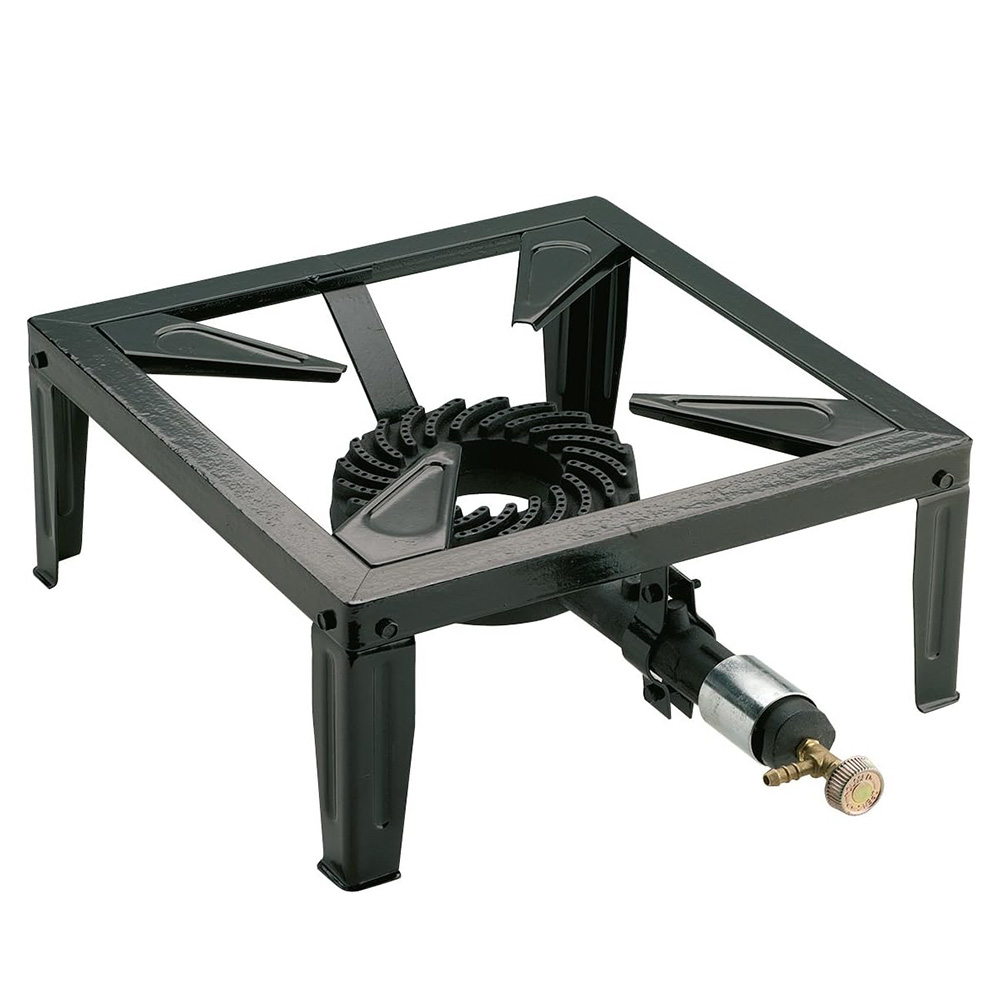 Fornello a Gas in ghisa e acciaio da 5,8 kW con 4 Piedi per esterni e campeggio - Regolatore di fiamma e bruciatore da 125 mm - Misura 30x30x14 cm