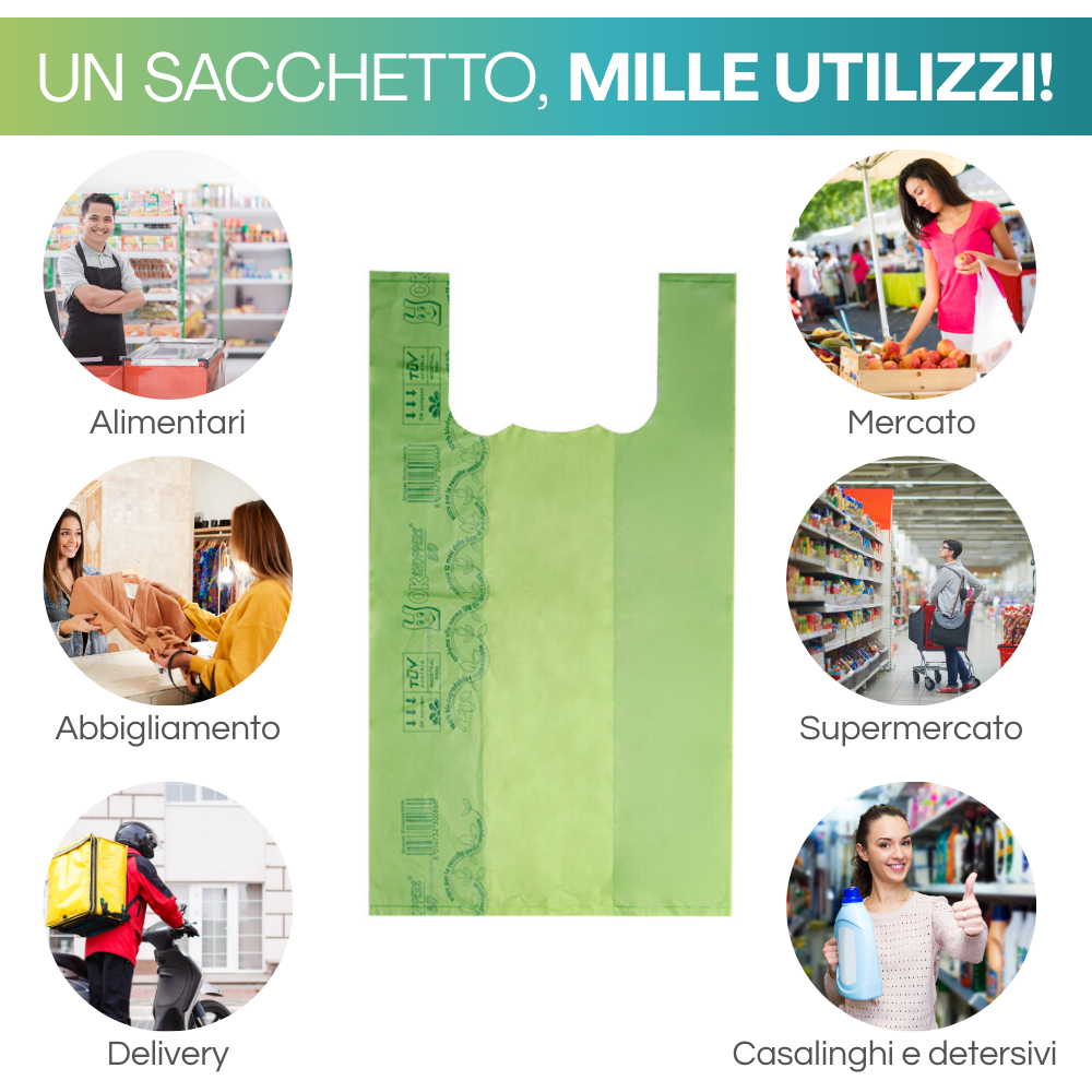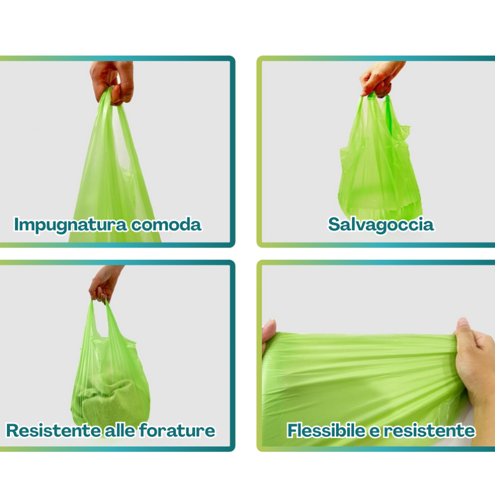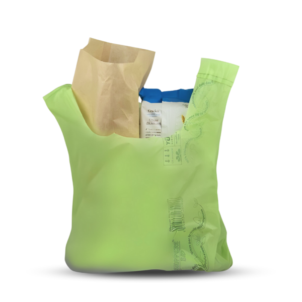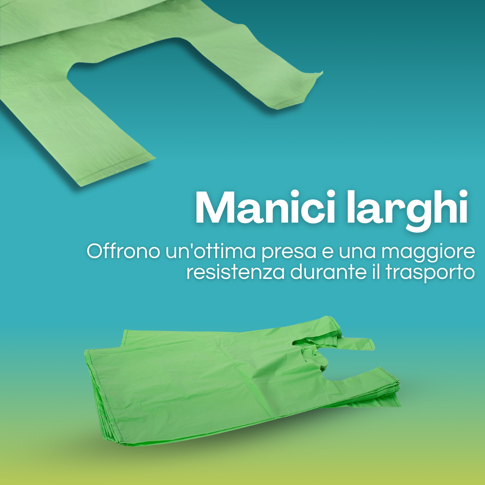 4 kg di Shoppers Biodegradabili e Compostabili Verdi misura 35x65 cm e soffietti laterali da 10 cm