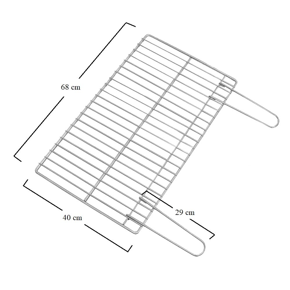 Griglia bbq in acciaio inox con 2 manici, Misura 68x40 cm, graticola per alimenti per cottura uniforme