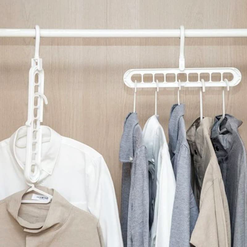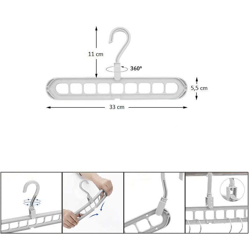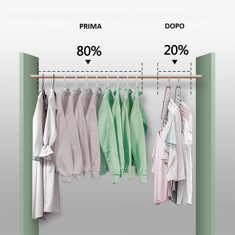 6 Grucce Salvaspazio in plastica con gancio girevole 360 gradi Bianco mis. 33x5,5 cm - Organizza fino a 9 indumenti Gruccia verticale e orizzontale per armadi