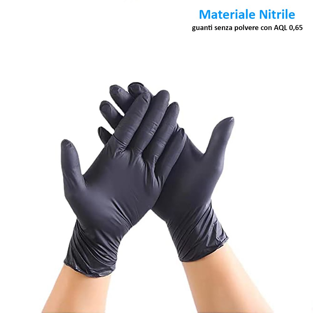 100 Guanti in nitrile senza polvere di colore Nero. Taglia: L - 1 Confezione da 100 pezzi