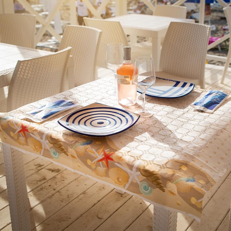 Le tovaglie in carta goffrata sono disponibili in varie fantasie:
