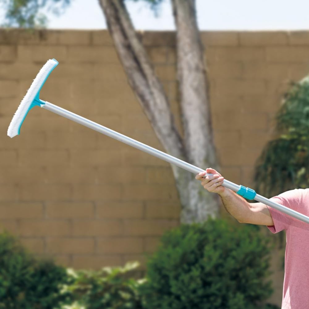 Kit pulizia piscine composto da: 1 retino, 1 spazzola da parete curva ed1 testa aspiratrice manuale con sacchetto