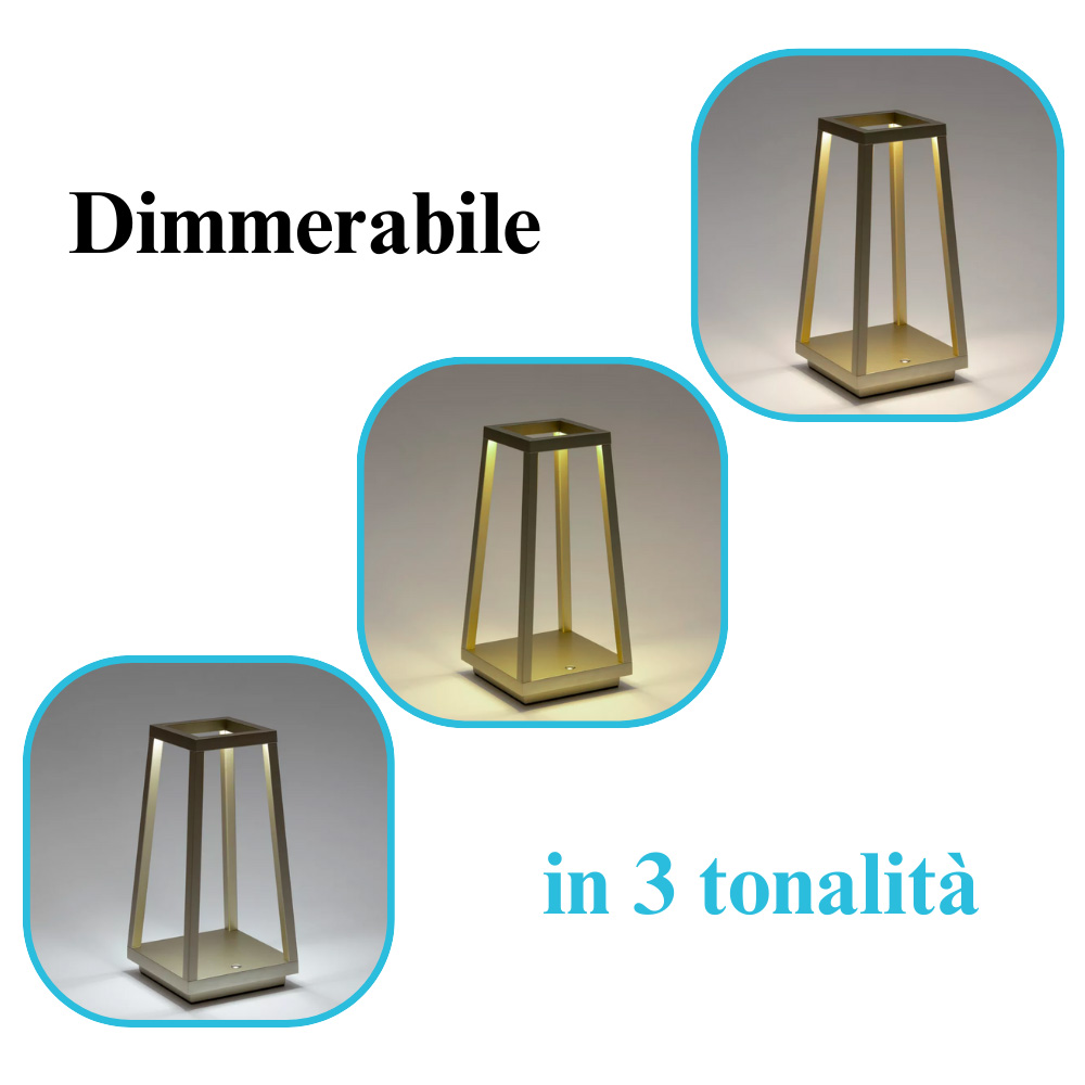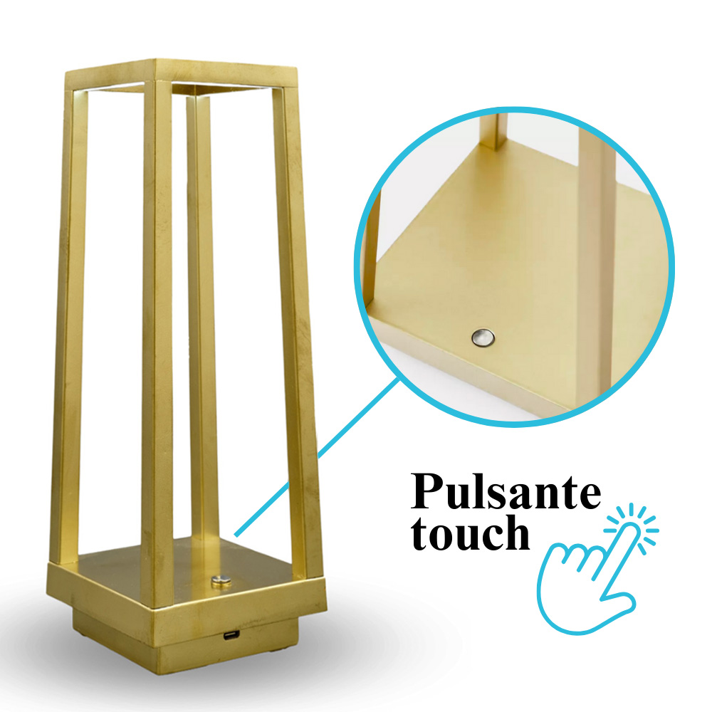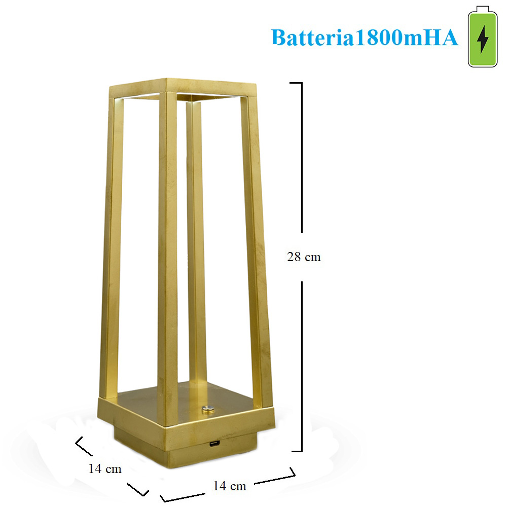 Lanterna touch senza Fili con luce a LED dimmerabile in 3 Tonalità di Bianco - Misura 14x14x28cm e batteria 1800mHA - Colore Oro