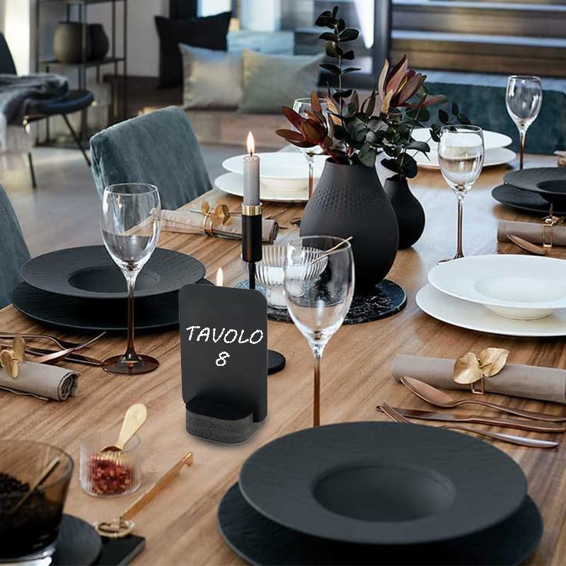 6 Lavagne segnaposto in Forex Nero mis. 7x10 cm con scrittura su doppio lato con gesso o pennarello per bar e ristoranti