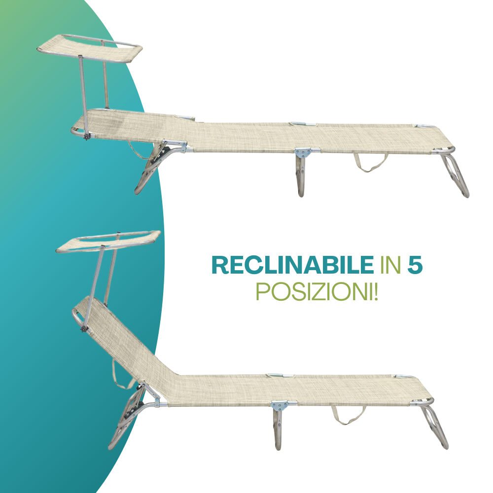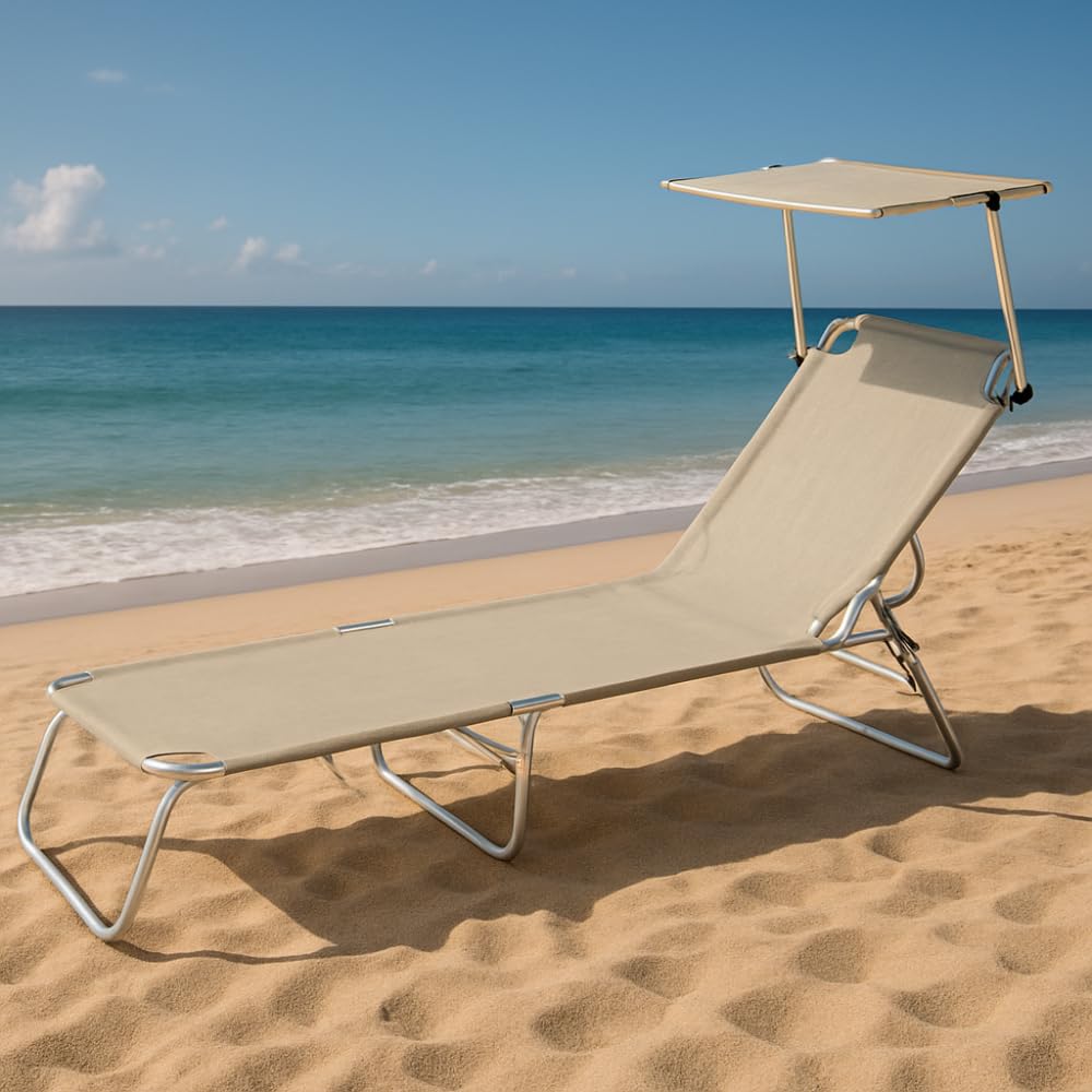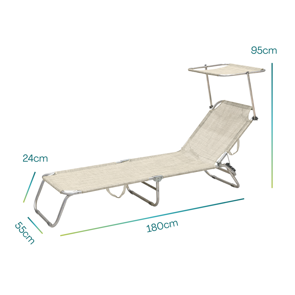 Lettino prendisole pieghevole Beige con tettuccio parasole