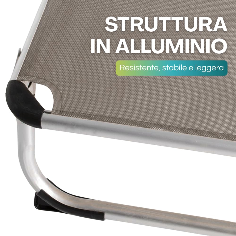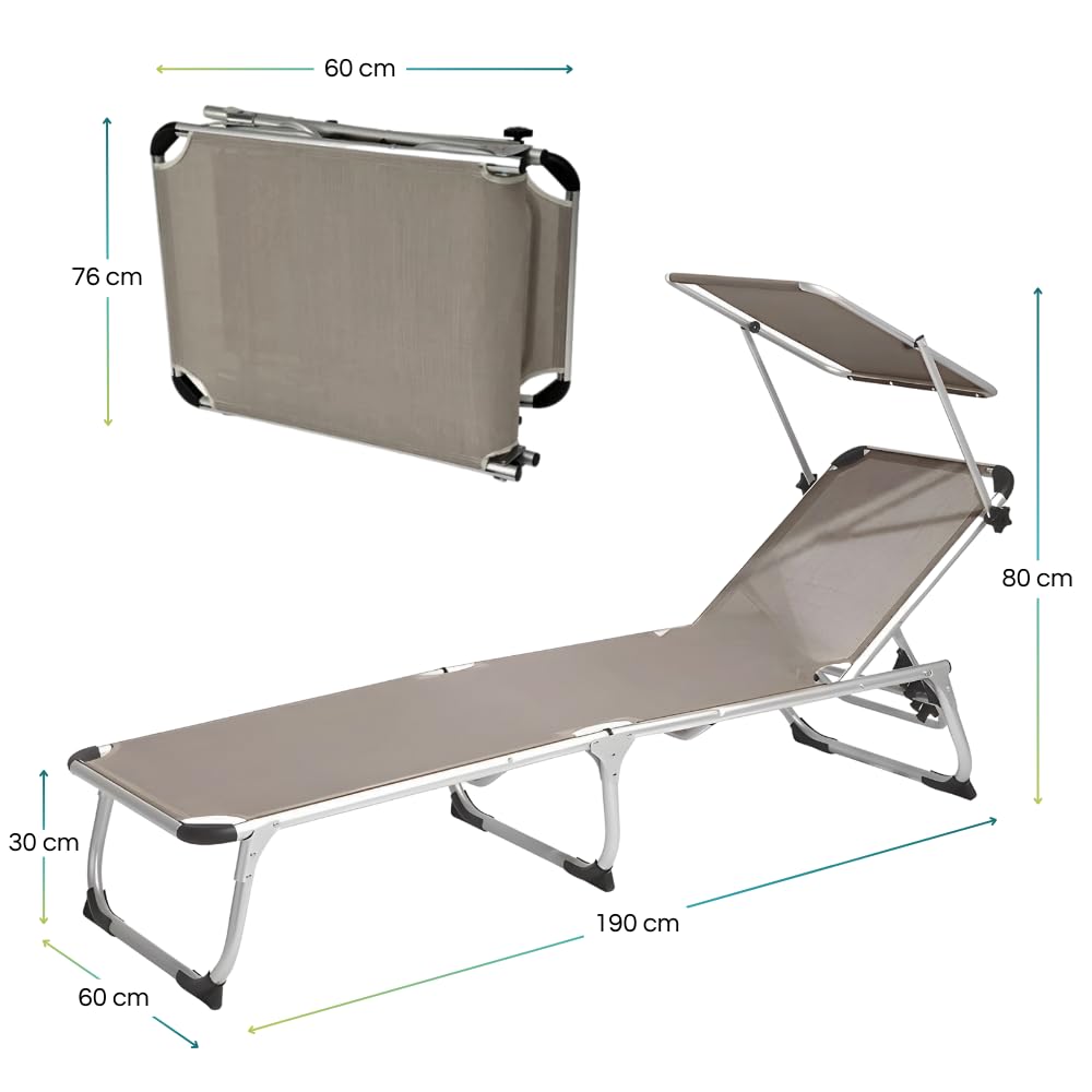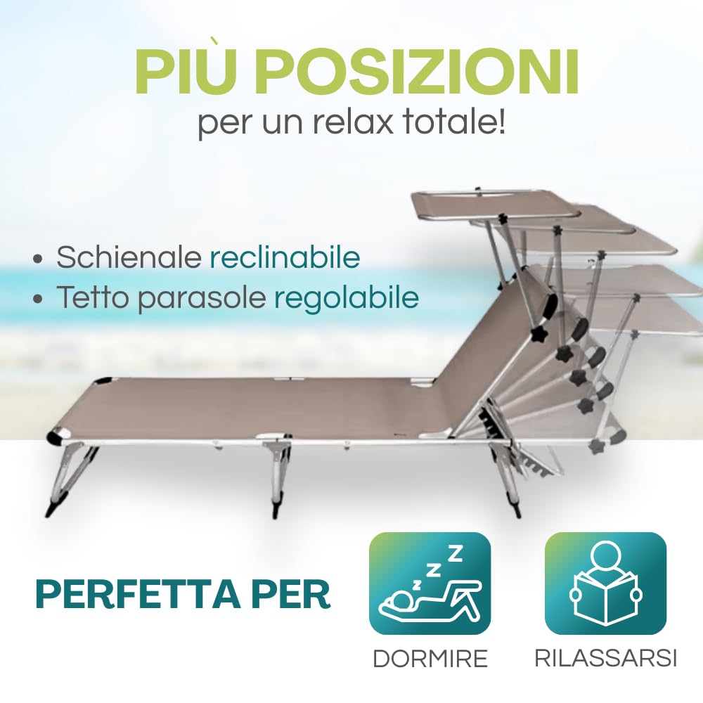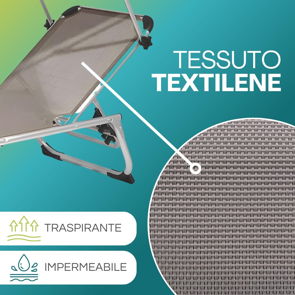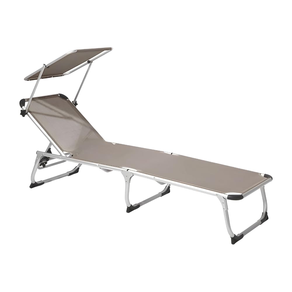 Lettino prendisole in alluminio Tortora con tetto parasole