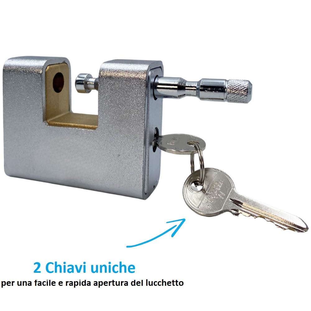 Lucchetto Corazzato in Ottone 80 mm con Rivestimento in Acciaio Temperato - Antiscasso e Sicurezza Massima ideale per Serrande, Bici e Garage