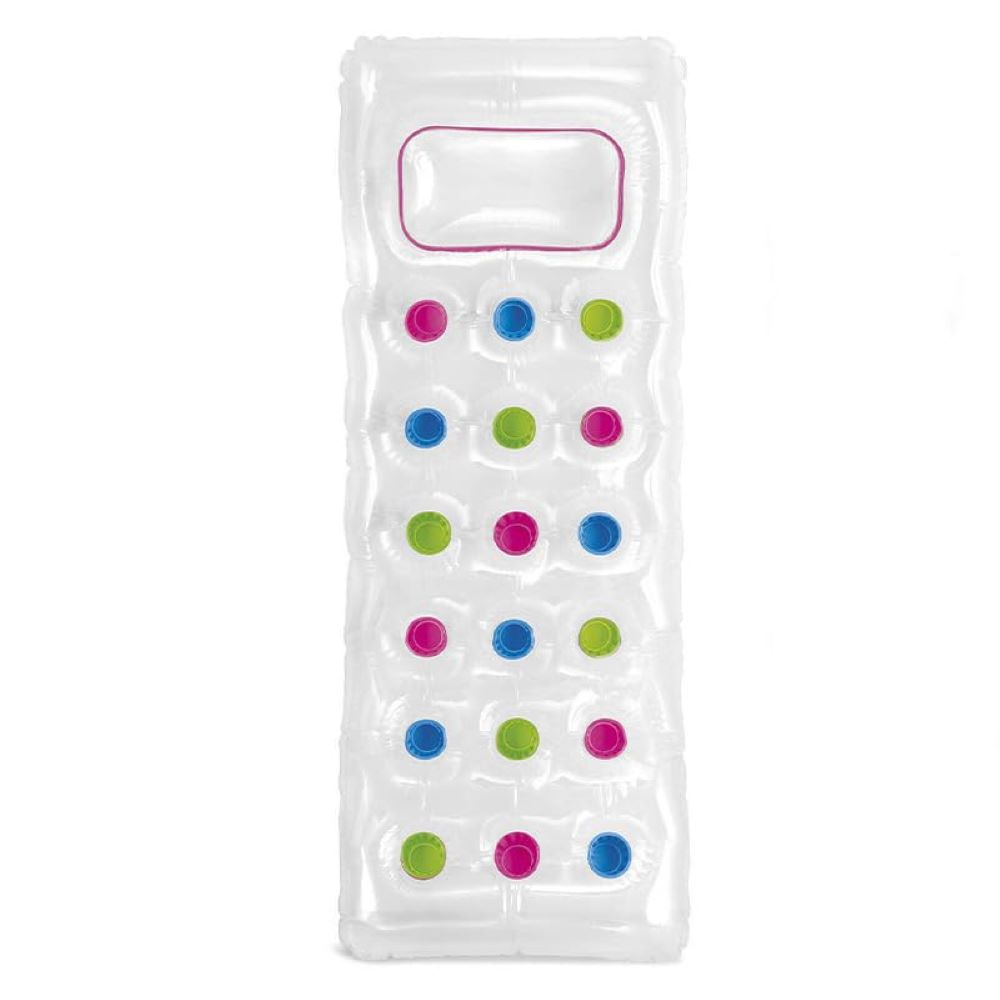 Materassino gonfiabile con 18 Fori colorati - Misura 188x71 cm - Lettino gonfiabile con oblò per piscina - Trasparente Dettagli Colorati